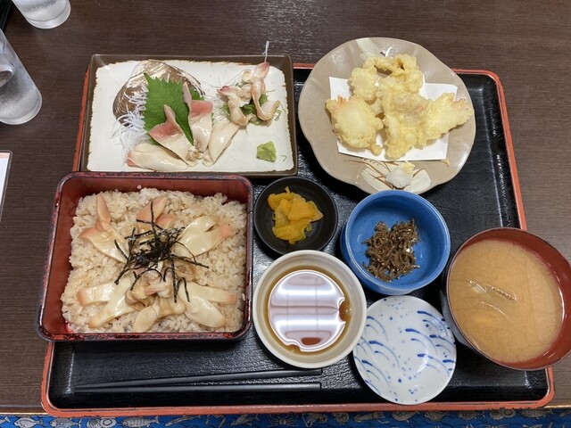 出張先で昼食をとるため、予約して皆で入店。12時前であったが、大型バスも駐車可能である広い駐車場がほぼ一杯の人気店。地元の方、観光の方、それぞれ皆さん嬉しそうに楽しんでいる。道を挟んだ向こう側が海で、磯の香りが食欲を誘う。