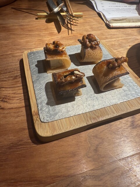 ⚫︎生八つ橋と家味噌漬けフォアグラ 8年熟成のモデナのバルサミコ胡桃