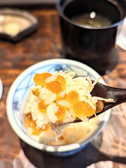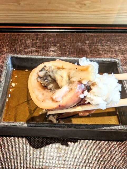 おつまみで子持の槍イカに辛味大根を乗せた一品がねっとりしてとても美味しかったです