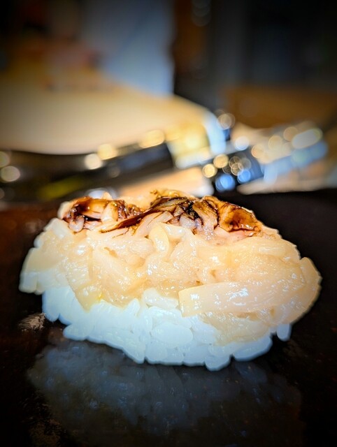 鮨のネタとしては変わってますがホタルイカのたたいた鮨と虎ふぐ白子も最高
