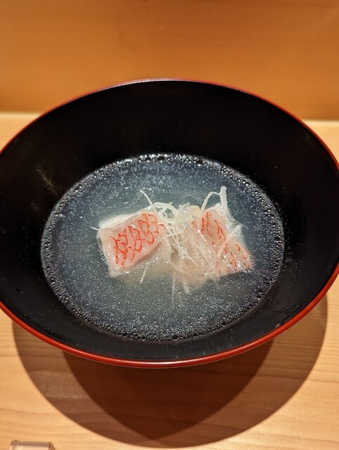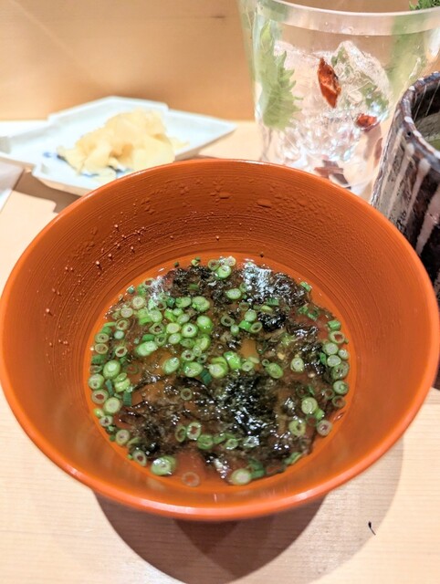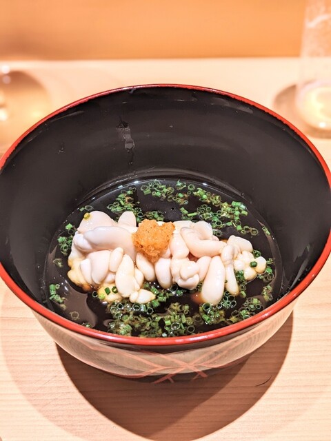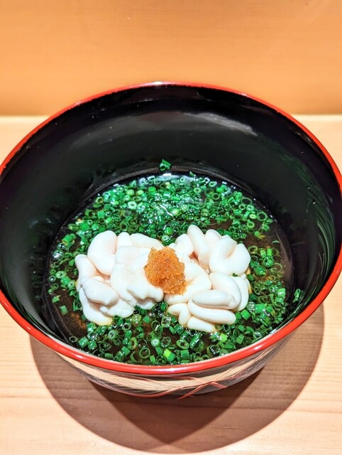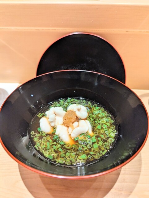 今回いただいた感想はヤリイカが美味しくてその出汁がまたメチャクチャ美味しく全部飲んでしまいました。そしたらもう一度出汁を入れてくれそこにシャリ玉を入れてくれました。