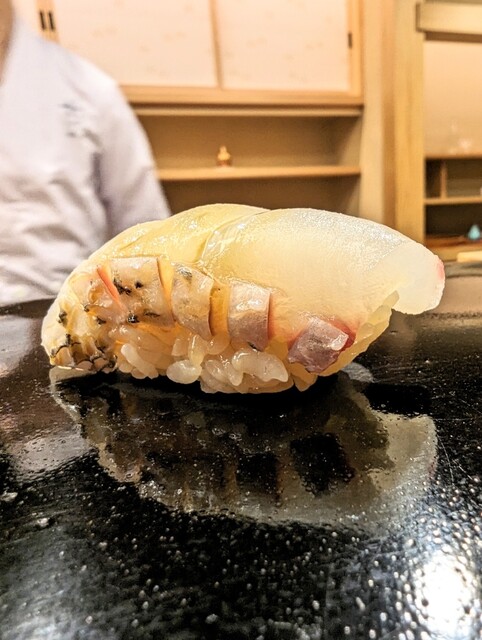 この日のお鮨は何といっても縞鯵!そして鯖の脂がのってきてめっちゃ美味しい!