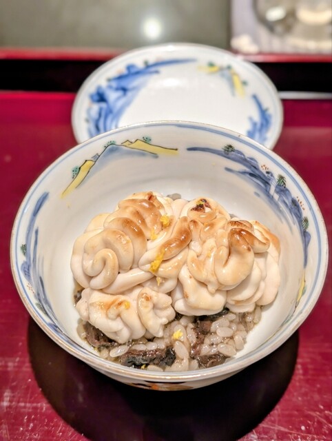●河豚の炊き込みご飯、赤出汁、香の物