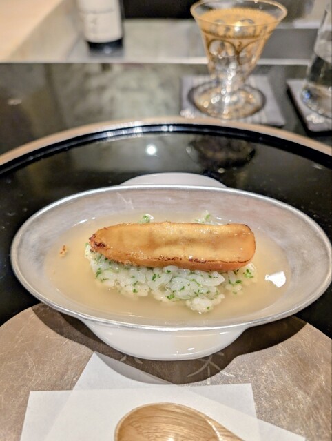 アワビ肝ソースにウニリゾット