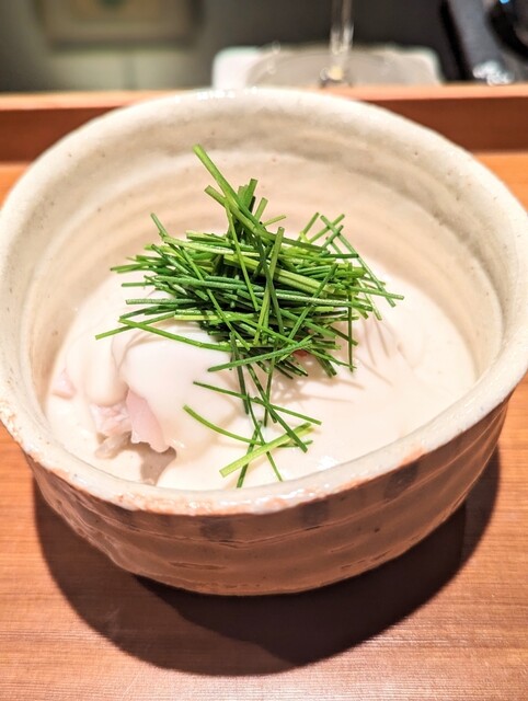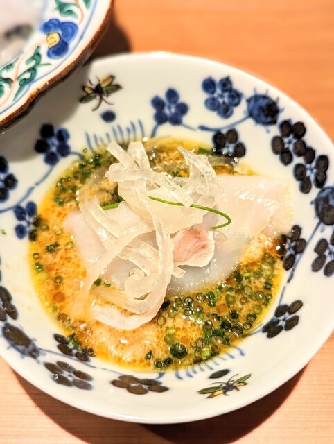 今回のトラフグの白子のポン酢はいつもはあん肝で出すんですが白子をポン酢とはビックリするくらい美味しかった