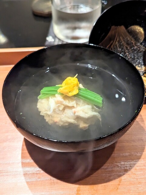 鮑の溶岩焼きもさることながら松茸と毛蟹のしんじよう、いつも無理言って出してもらってるフカヒレサンドも抜群でした!