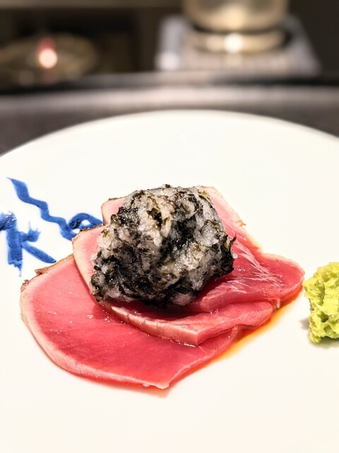 はまちを海苔で巻いて食べるんですが脂の乗りが良くめちゃくちゃ美味しかった!
