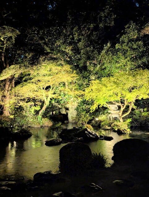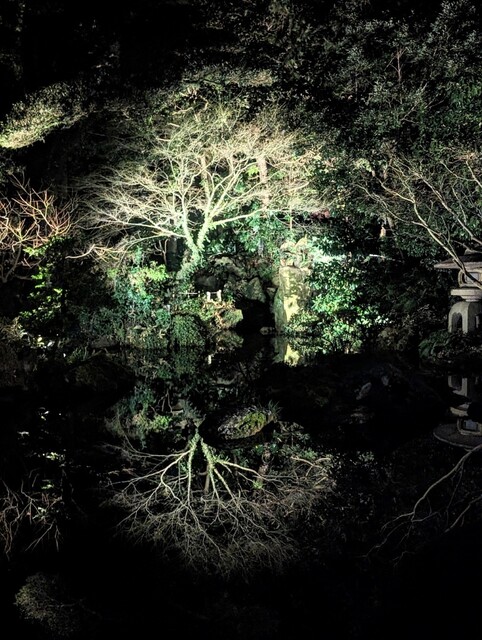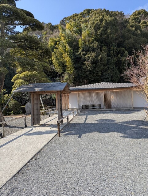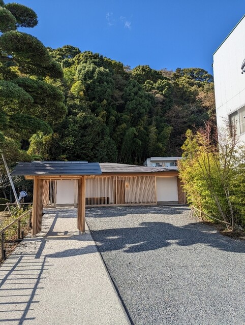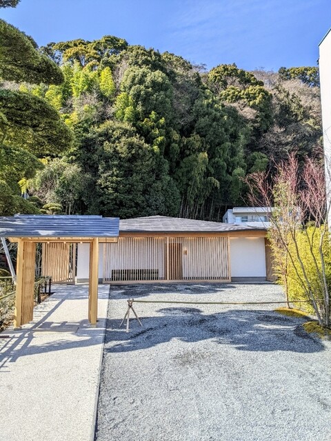 お店の前に到着すると後ろに山、左手には中庭が美しく店内からの庭を眺める池の景色がとてもいい感じです!