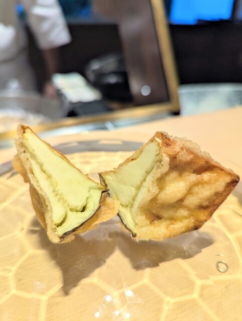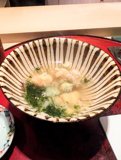 今回いただいた中で鮑!鮑の肝の天ぷらが濃厚で抜群の火入れで食感も最高でした!悶絶!