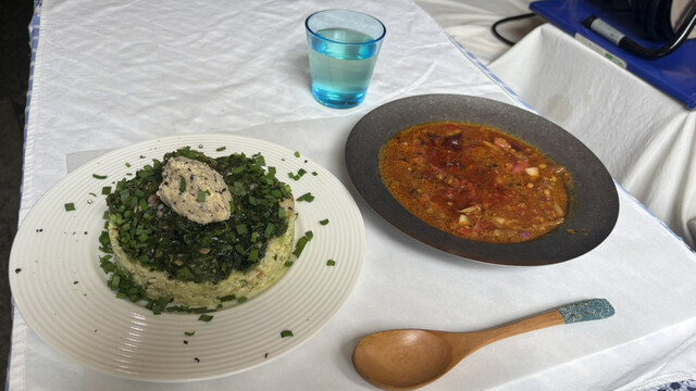スープは先週と違って、ほうれん草と豆ですごくボリューミー!いつもスープが優しい味でバランス整えてくれる^_−☆