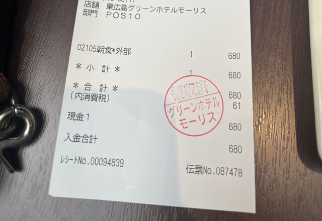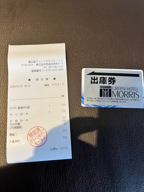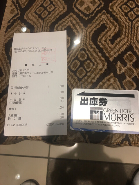 ホテルのカウンターで購入した朝食券(駐車券も貰えます。)