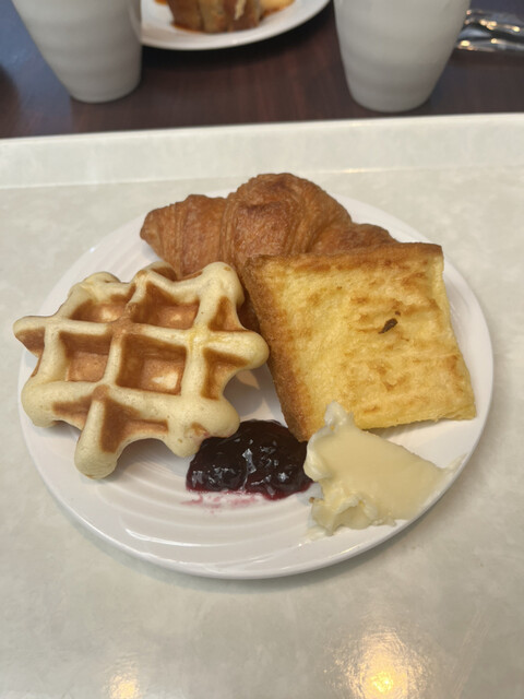 美味しく頂いたらパンやワッフルとケーキ、焼きプリンなどのデザートも頂きました。