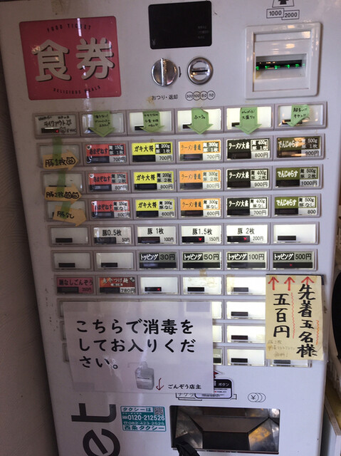 入店するとすぐに券売機があり、ラーメン普通豚1枚の券を購入して、店外で待ちます。