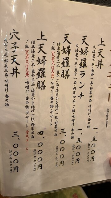 予約は天麩羅膳(3,300円)か上天麩羅膳(4,400円)のみ可能です。