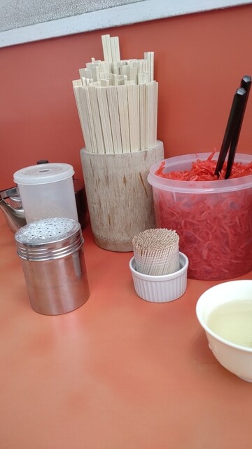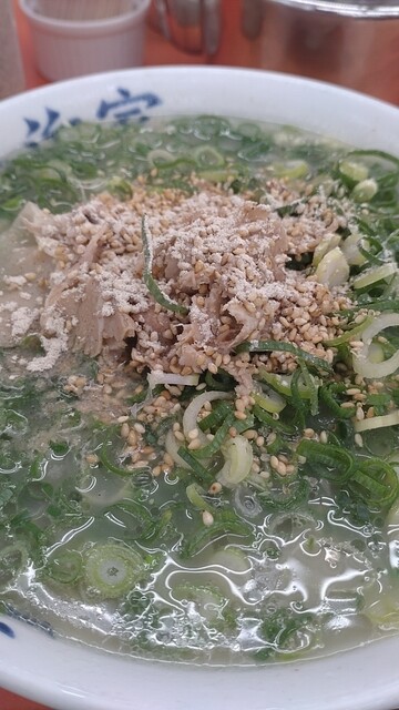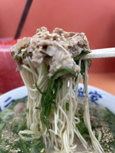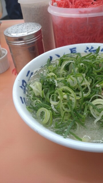 着いて一言『ナマ』今日はネギ…普通で良いわ!悩んだけどデフォでもソコソコ入ってるし✌︎('ω')✌︎ここはネギも美味いのよね!最初に言っとくと最後麺を食べ終わったにシャキシャキ音がするのは…はい!自分がネギを咀嚼する音です。それくらいデフォでも多い幸せなネギ量なんです♪( ´θ`)ノ