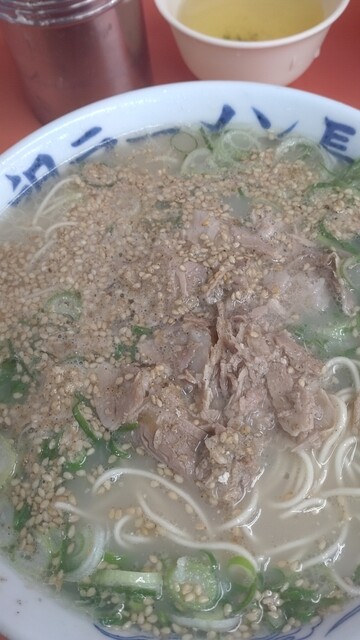 すぐに着丼!よっしゃーこれや!なんかスープ少なくね?まぁ良いか、小さい事は気にするな!ゴマ振ってコショー投入して麺から喰らう!美味い!やっぱり朝ラーは美味い!この麺も最高!常にナマ!騙されたと思ってヤワを!と、いうマイレビさんもいるが騙されない笑笑