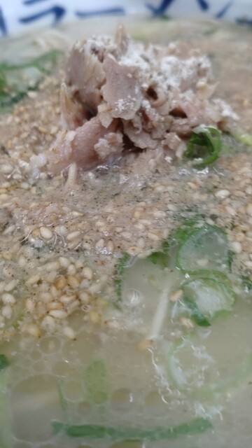 1〜2分で着丼します(^q^)デフォを写真撮って胡麻降ってコショー降って(量…足りんか?笑)再度撮影^_^