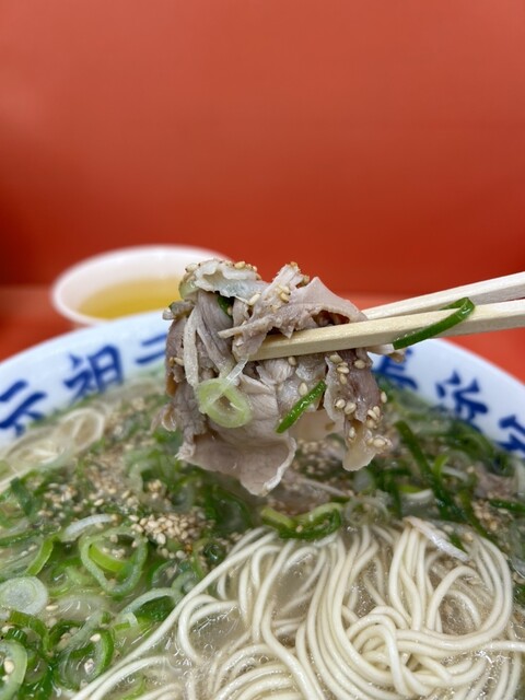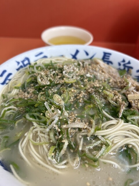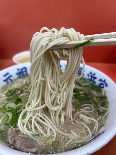 で、ラーメン様とご対面!ベタにしないので変わらずのアッサリビジュアルです。これぞ長浜ラーメンっしょ?