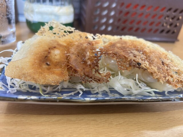 今日はキャベツにonしてる一口餃子です(^.^)これも美味い!小さいのにしっかり味がして最高です。キャベツも有難い!開店前にオーダー通ります。常連認定と思い込んでますf^_^;
