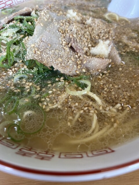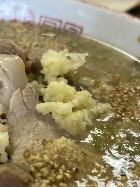 今日はジム行ってるので遠慮なくニンニククラッシュ\( ˆoˆ )/ゴマ降ってラーメン完成します。ここでは大盛バリカタとご飯はデフォです(๑˃̵ᴗ˂̵)
