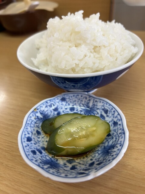 ご飯も毎度の絶妙な炊き加減でグー!漬物が必ずついてきます。今日は胡瓜にwith大根さんでした。胡瓜もいつものと少し変化させてましたね!今ではご飯抜きの江ちゃんはあり得ません(๑˃̵ᴗ˂̵)