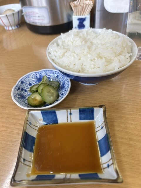 漬物も胡瓜がメチャ美味で!そう…お母さんが体調良くないらしく(開店前の待ち時間に常連さんの会話から…)今日はいらっしゃらなかった!早く良くなってね(T ^ T)で、て…事は浅漬は江ちゃんが作ってんのね!餃子も、味玉も…頑張る江ちゃん!