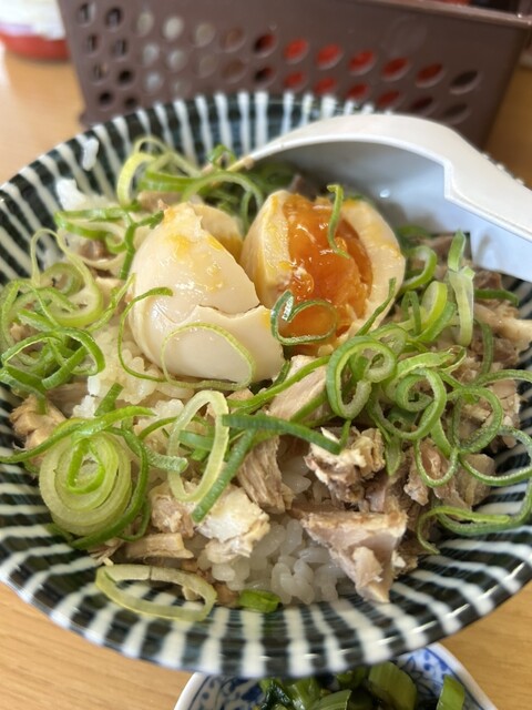 で、そこまで腹ペコじゃなかったのに③にした!今夜がたくさん食べるの確定してるんで昼は控えなきゃ…なのに!玉めし食べると腹パン確定なんだなぁ…でも最近玉めしが好きなんだなぁ…ボリュームもあるし(๑˃̵ᴗ˂̵)ネギたっぷりなのも良きですね¥450-と、お値段は少々高めなのでホントは給料日飯など特別な日に設定しても良いのですが…そこまでしなくて良いかf^_^;