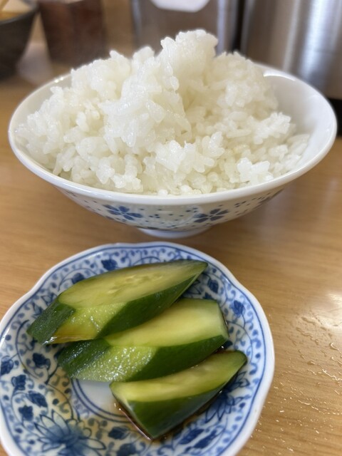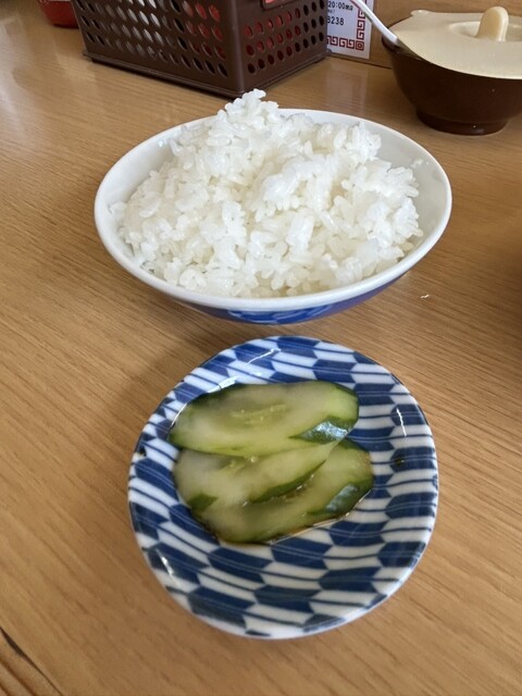 餃子付きのA定食!パリ美味です。キャベツも良き!ご飯の炊き加減は変わらず…いや、今日のは特に好み!ヤワ目!好みでバッチリ!そうそう今日は孫が来るのでニンニクはダメ予定も小っちゃいの1個クラッシュしちゃった^^;