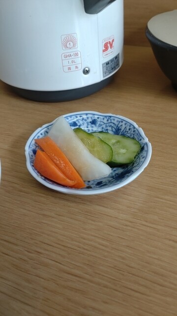 で、ご飯の前に漬物食べてみた!これ絶対手作りよね?