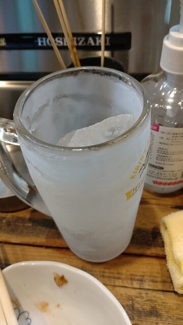 ここは焼鳥も美味いけど玉ねぎも美味いけど…グラスが最高!キンキンに冷えたグラスに注がれてくるビールは最高すぎかよ!焼酎のソーダ割り用のグラスもキンキンかよ!マジ最高に美味い!