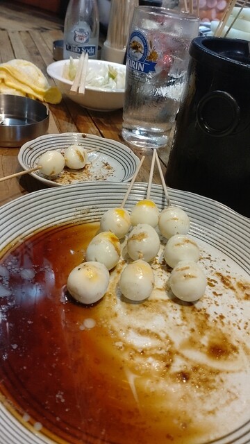 他に食べたのは…砂ずり、豚バラ、ダンゴ(捏)、とり皮、つくね(ダンゴ以外に普通サイズのつくね…と思ったら同じダンゴやった(°▽°))、ハツ、レバー、山芋、心のこりは無し、他は…忘れた( ◠‿◠ )