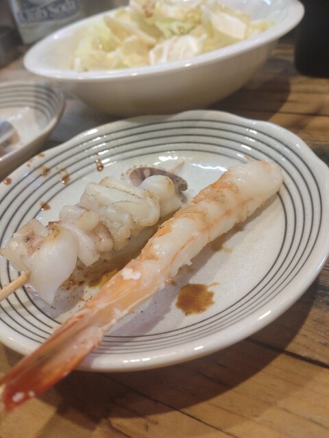 ビア2杯と続きは焼酎でグビグビと( ^ ^ )/□串はなんでも美味いけど大好きなタマネギ食べてない気がする!と思ったら写真撮ってた(^◇^;)