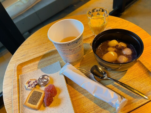朝晩のお食事以外はフリーアクセスラウンジでドリンクやちょっとしたお菓子がいただけます。
