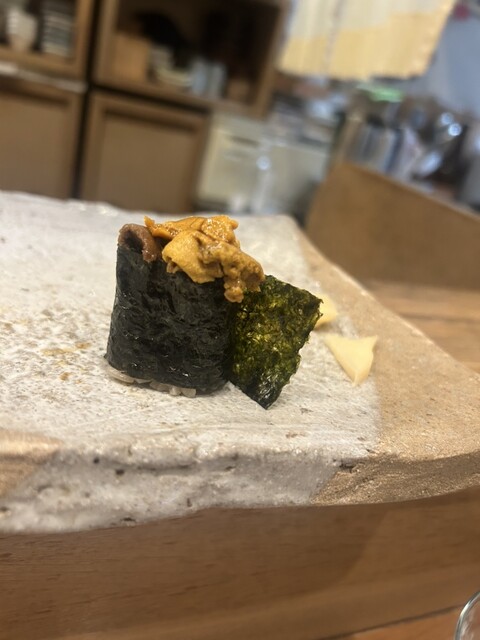 気さくで楽しい店主がもてなしてくれる常連さんから愛されるお店。シャリは赤酢でやや塩味が強めだけど一体感あった。東京から来たと聞いて唐津の話をたくさん聞かせてくれた。