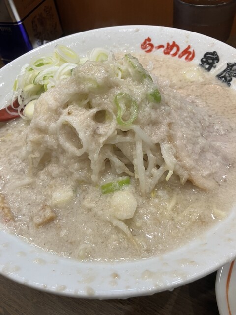 今回は、半ラーメン(ネギ多め、麺固め)+並チャーハンセットをオーダーしました。