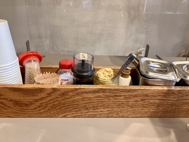 店内はコンクリートの打ちっぱなしで、無機質な感じがいい感じです。席は、立ち食いのカウンターのみで10席ほどでしょうか。