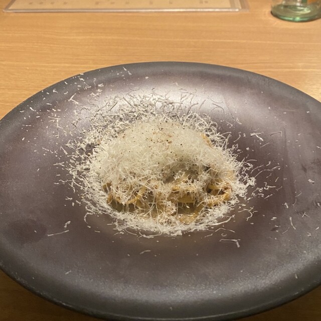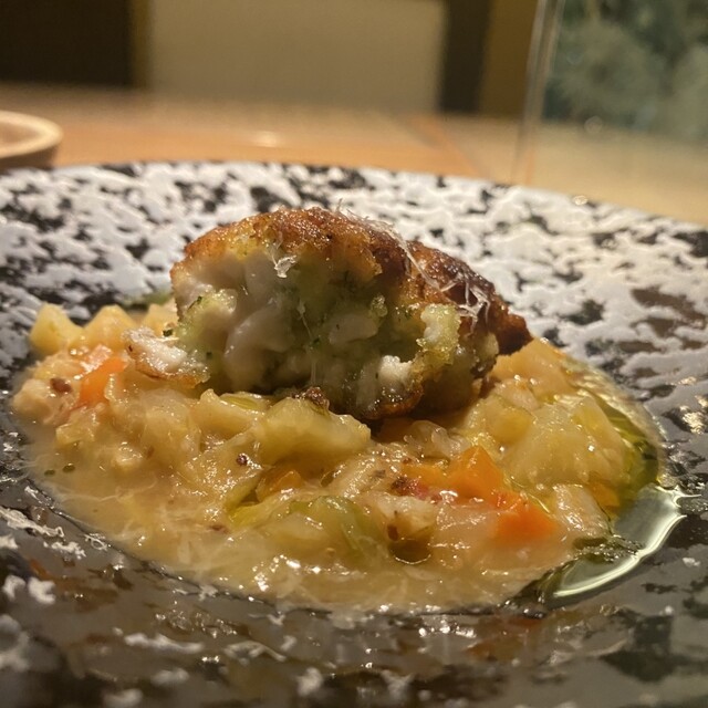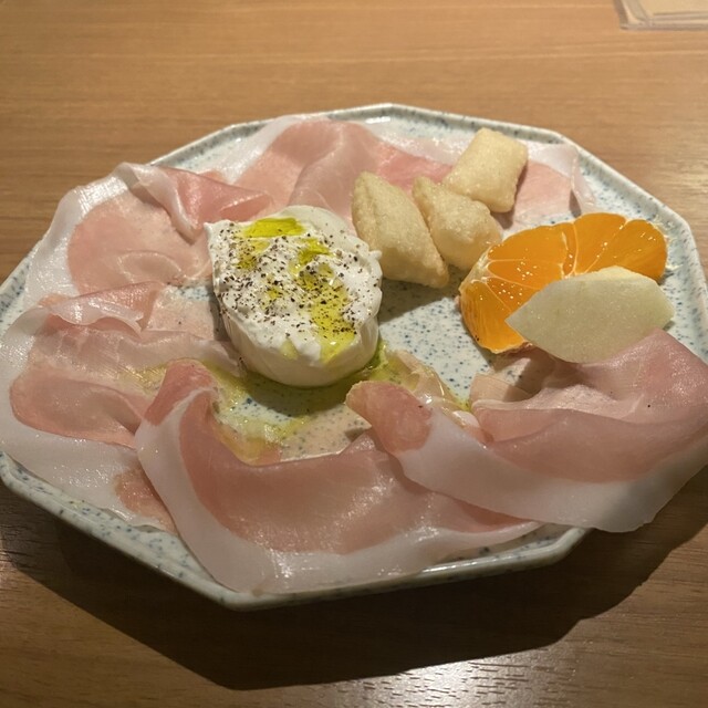 初めての訪問。可愛らしい急な階段に心を掴まれつつ入店しました。19時30分予約で店内は満席、期待が高まりました。今回はコースを注文。フランス産生ハムとブッラータチーズ、季節のフルーツとニョッコフリットは驚くほどのボリュームで、思わず「これをみんなで?」と声が出るほど。ですが美味しさに箸が止まらず、あっという間に完食。すっかりお気に入りの一皿になりました。鮮魚のカルパッチョはニラとピスタチオのソースが斬新で、ニラがこんなにもイタリア料理に合うとは新発見。