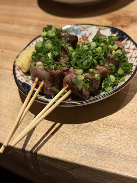 鳥刺し3種からいただきましたが鳥の柔らかい食感と山葵、ニンニク、塩、どれをつけても美味しくいただくことができました。
