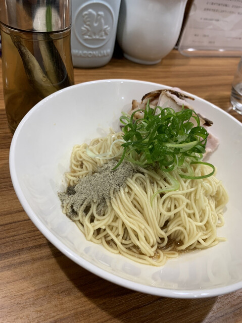 味付け替え玉と言うものがあり食べ終わり間際に注文、これは油そばのような感じで一緒に出てくる少し甘めの煮干しとイカが入ったお酢を入れて食べるのがおすすめ。