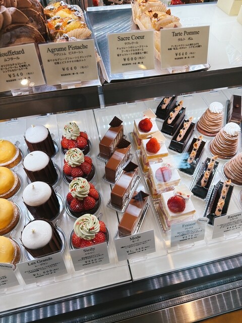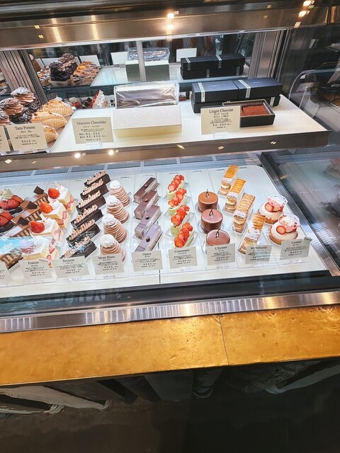 平日のため特に待ちもなし、ショーケースには色とりどりのケーキやチョコレートが並んでいます。