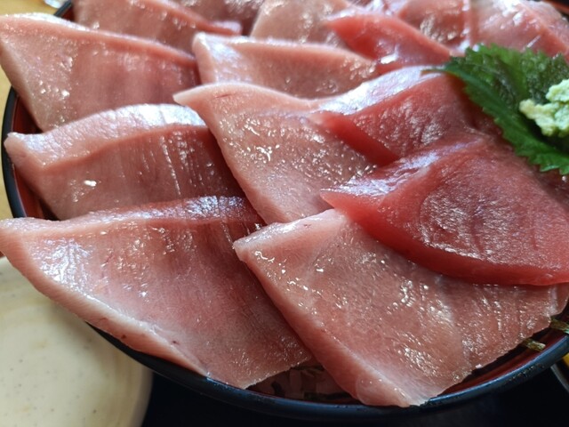 まぐろ丼って事で、赤身が中心なのかと思っていましたが、これほぼ中トロですよねってネタの構成。回転寿司なら大トロって言いそうな部位も数切れ入っていて、かなりのレベル。