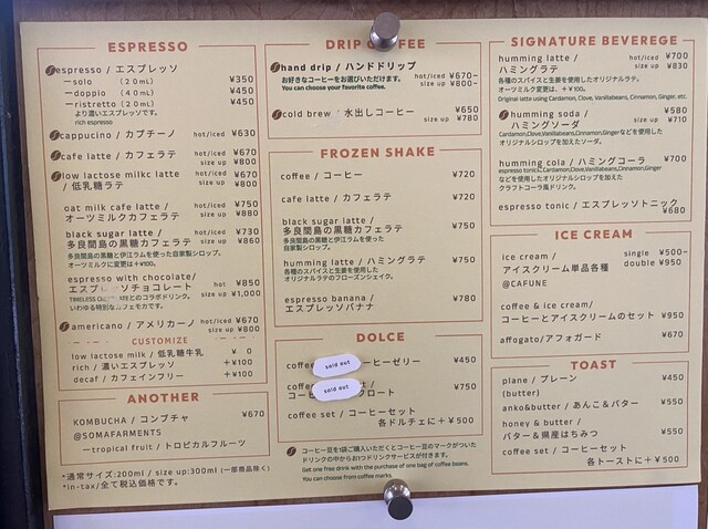 左: 多良間の黒糖カフェラテ 右: ハミングラテ
