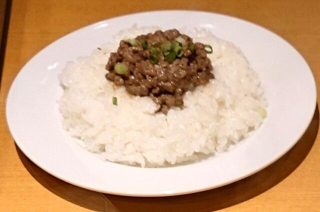 見た目はご飯の上にそぼろ状のミンチが乗っているので、一見ガーリックライスではありません。しかし、一口食べるとその先入観は見事に裏切られます。かなりの量を使っていると思われるニンニク臭が口内へ。間違いなく、口内には収まらずに外に溢れ出ているはずなので、人と会うときには絶対に勧められませんが、間違いなく日本一元気の出るそぼろご飯と思います。もちろん、「さわやか」が出すミンチなので、肉肉しさ満開。+280円ですが、ハンバーグのおかわりをしたような気分にもなれますので、十分満足のいくトッピングになりました。