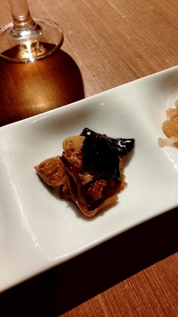 前菜3種のキクラゲと厚揚げ?の佃煮⭐️まろやかなお醤油でこっくりと煮込まれています♫