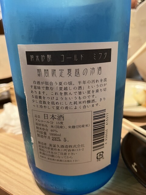「播州一献おりがらみ」「みむろ杉」「両関」「亀齢」「浪の音」「東北泉」と呑んで終了。