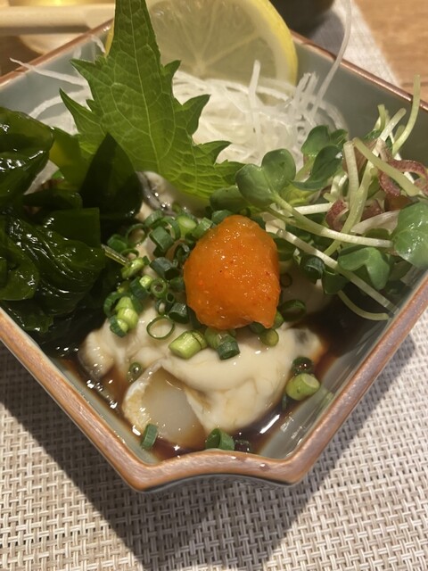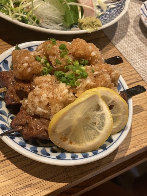お通しのおでん!真夏でもほっこりとても美味しくいただきました。刺身のツマや串物の大根おろし揚げ物どれも手が掛かっていて感心します。