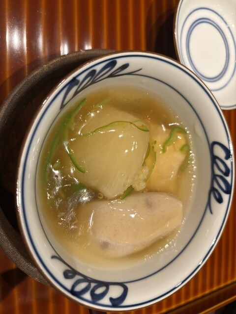 こちらに移転されて二年程なのかな、叔母宅から歩いて行ける住宅地の中にひっそりとあり、叔母二人と母と娘で伺いました。カウンター席とテーブル席があり、今回はテーブル席で、そこからは大将の包丁さばきは見えませんでしたが、どれも繊細なお出汁に美しい切り口、器もそれぞれに綺麗で楽しいものでした。お料理は月替わりだそうです。娘が貝類が苦手(食わず嫌い)なのですが、あわび蒸、蛤のお吸い物、「ん〜?食べれるかな」なんて言いながら口にして「美味しい」と全部残さず食べておりました。母や叔母はお酒も頂き、娘と私はノンアルワインを飲んでみました。ご馳走さまでした。大阪市内などでは、このお値段では頂けないなと思いました。