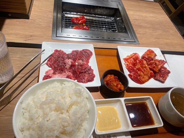 北海道産牛三種盛定食(カイノミ・カルビ・角切カルビ)
