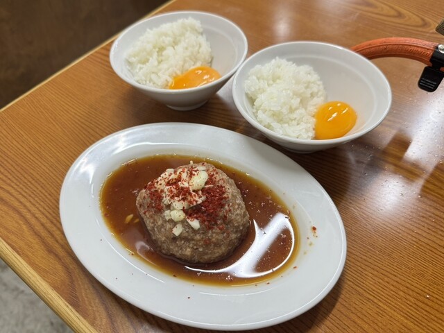飲めるジンギスカンはハンバーグのようなラム肉をお米と卵黄と一緒に混ぜていただきます