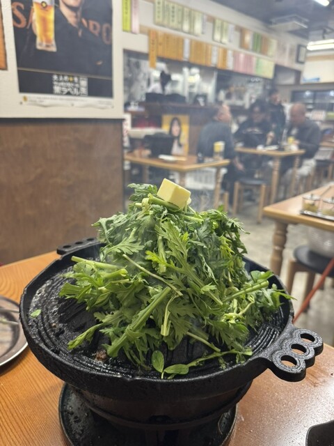 草原焼きは塩だれと炒めた春菊がめちゃ美味しい